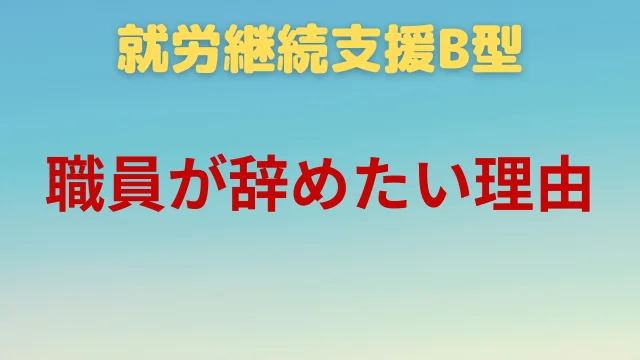 就労継続支援B型職員はなぜ辞めたいと考えるでしょうのか?